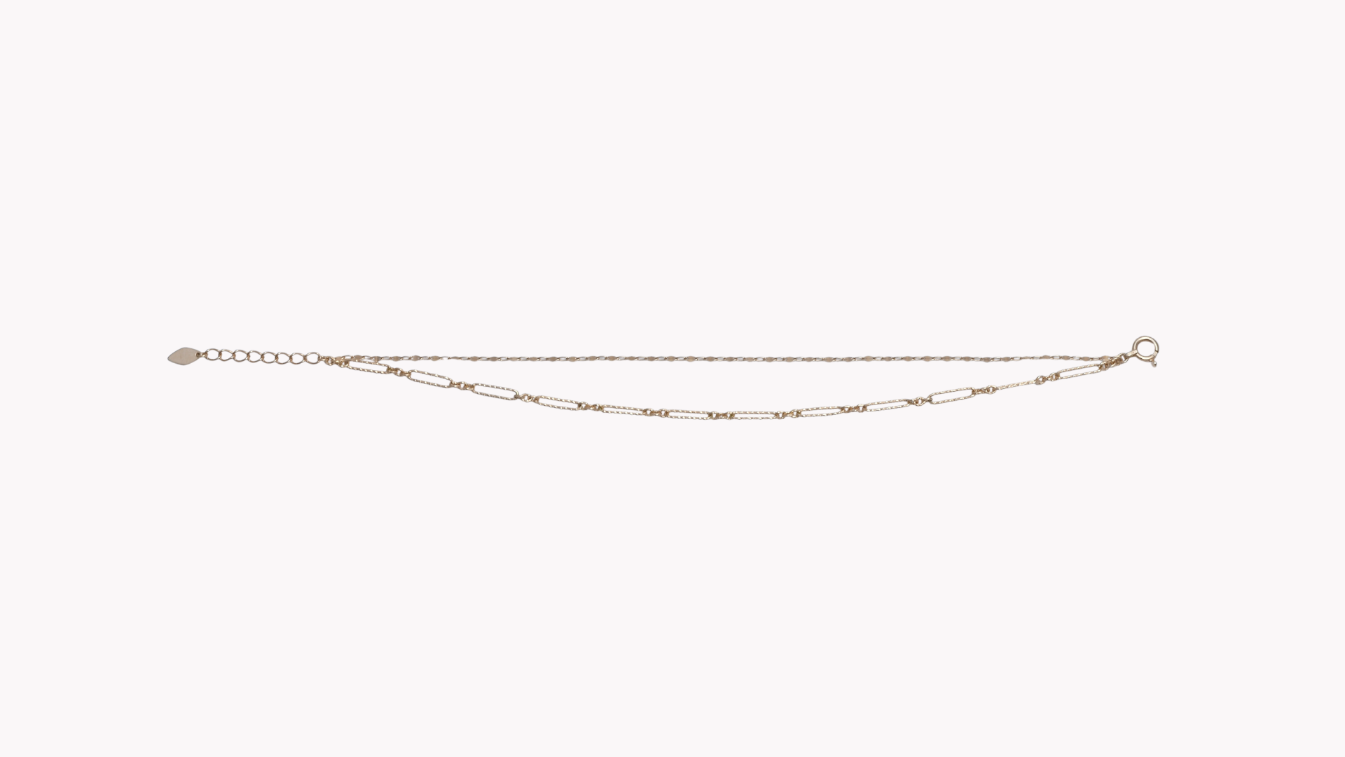 K10YG地金 2連デザインチェーンBTは、日常の装いや特別なひとときに、さりげない華やかさを添えるジュエリーです。