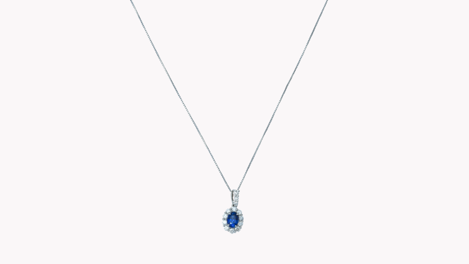 石にこだわった日本ジュエリーの最高峰。こだわりの石とデザインに定評がある逸品です。プラチナ製スレッダーネックレス。ロイヤルブルー・サファイア0.65 ctとダイヤ0.34 ctを配した上品なペンダント。