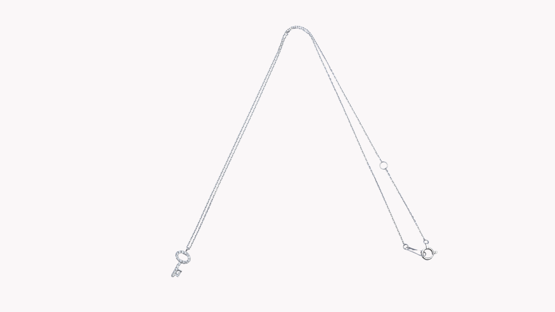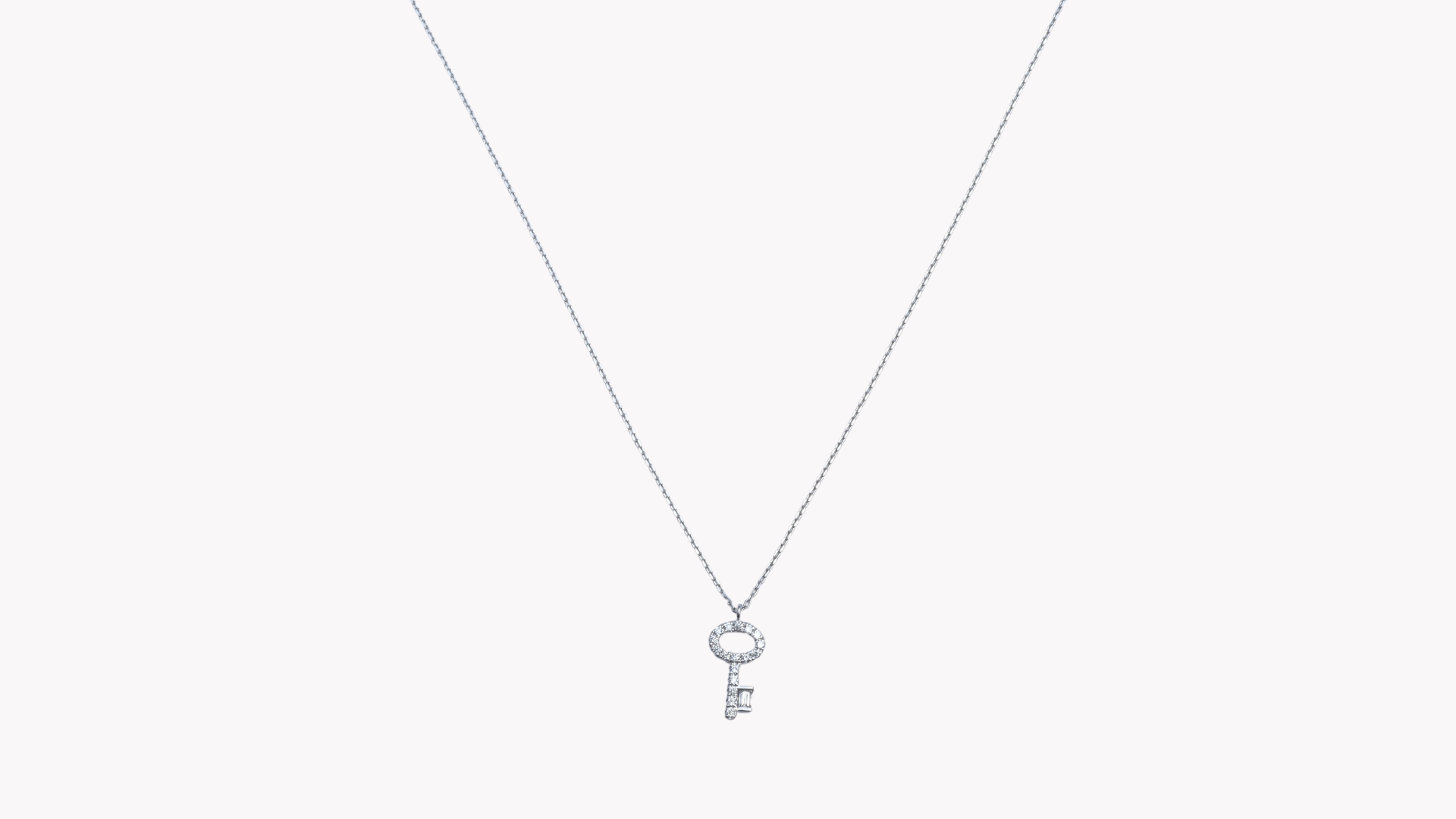 控えめなサイズながらも、0.1ctの上質なダイヤモンドが美しく輝く、鍵モチーフのネックレス。