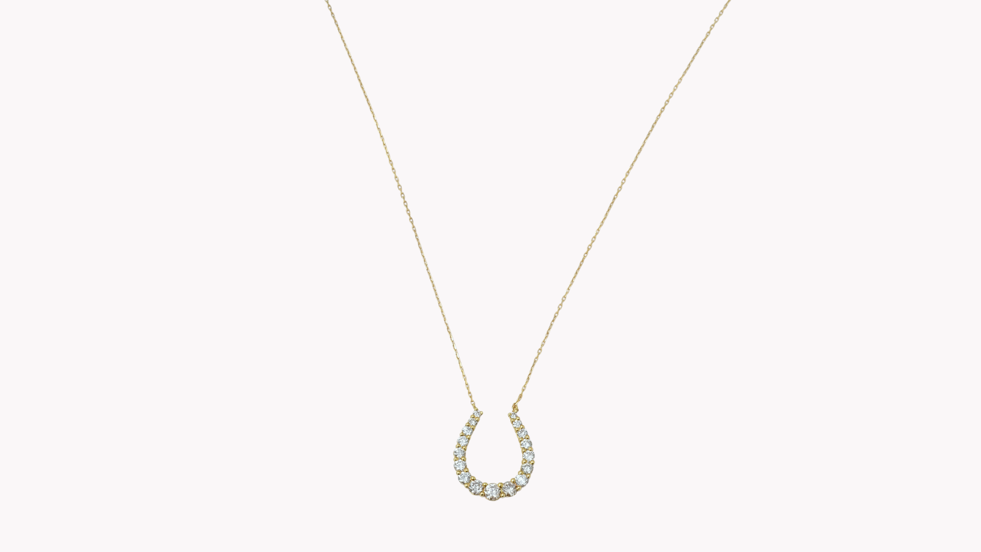 風に揺れる髪と、胸元でそっときらめく馬蹄モチーフのネックレス。