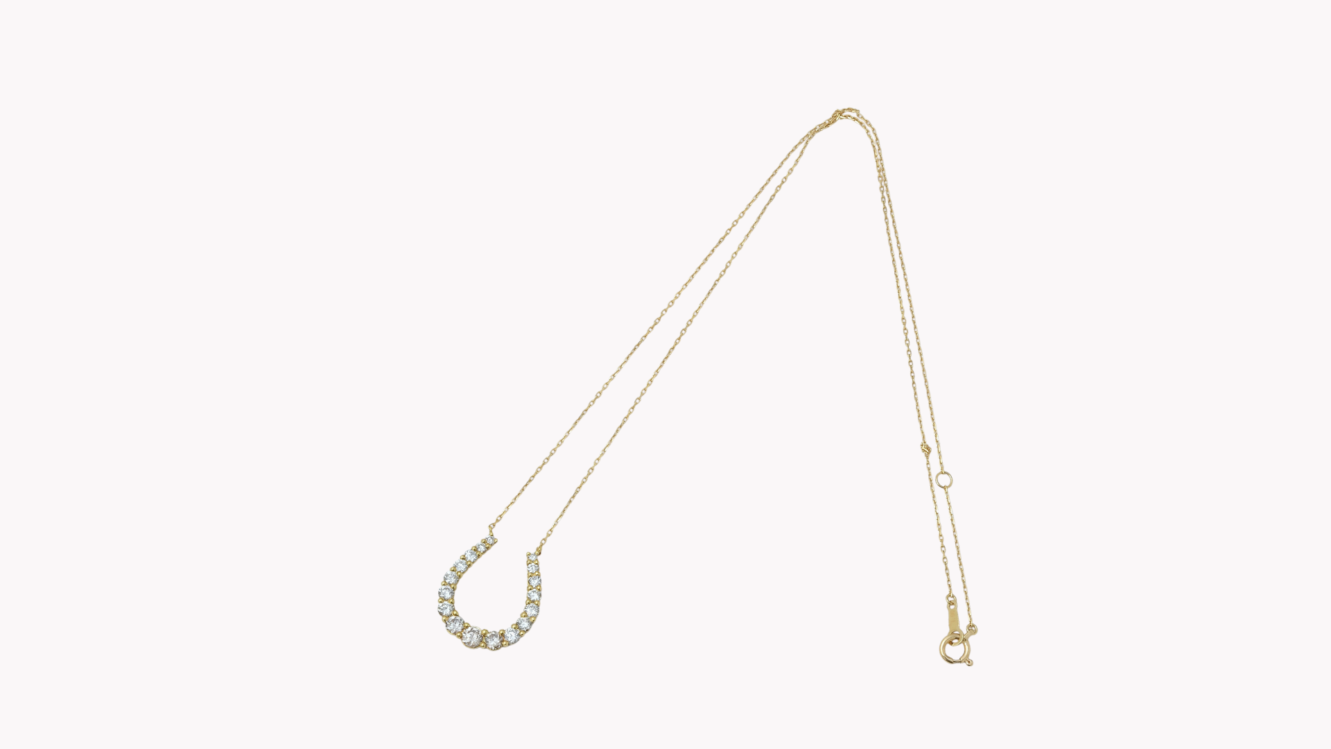 K18YG、ダイヤ1.00ct、40cmチェーン、総重量2.30g。