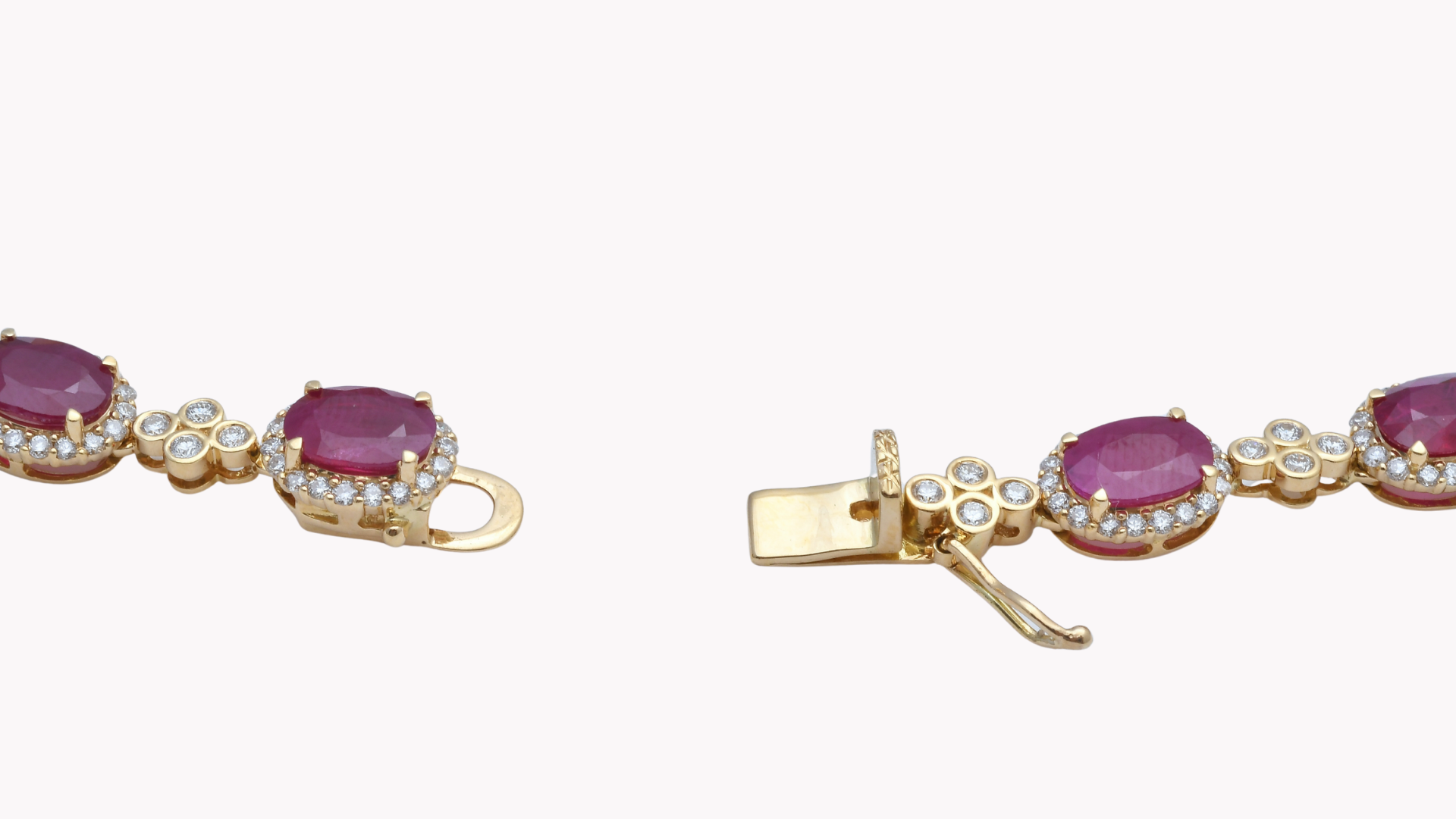 美しい石と作り手の想いを乗せた個性的なジュエリー。品質の良いジュエリーがお届けできるシリーズです。22.37 ct ルビーと 5.08 ct ダイヤのネックレス。