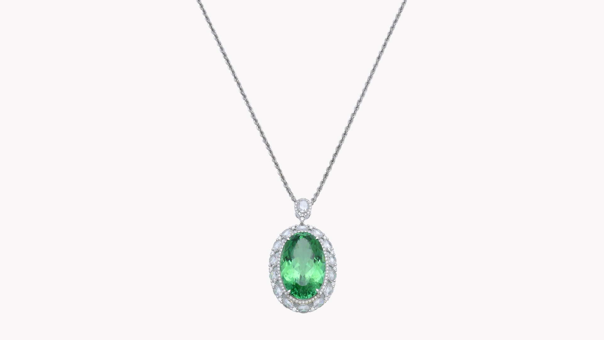 美しい石と作り手の想いを乗せた個性的なジュエリー。品質の良いジュエリーがお届けできるシリーズです。39.12 ct パライバとローズカットダイヤのペンダント。
