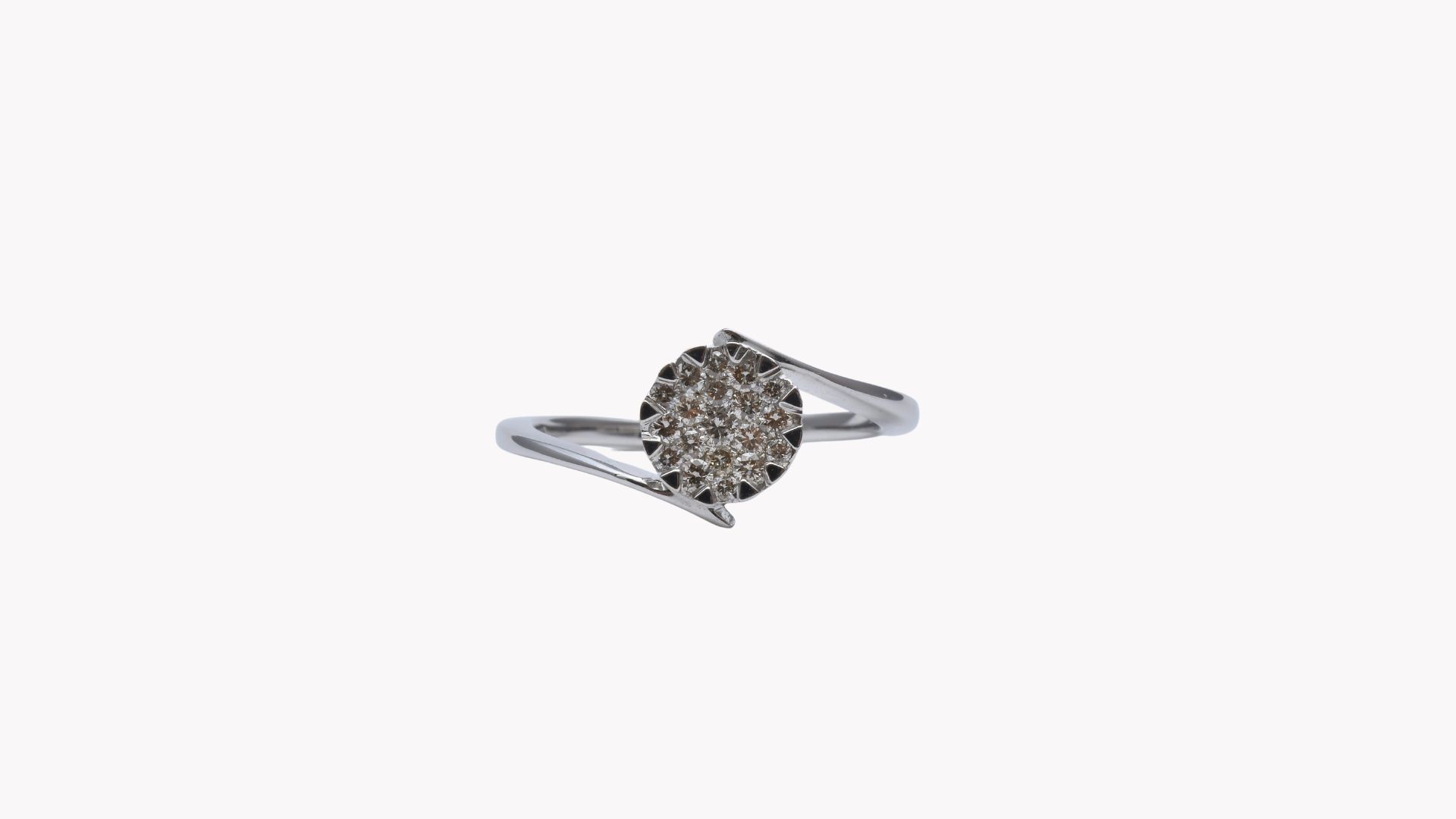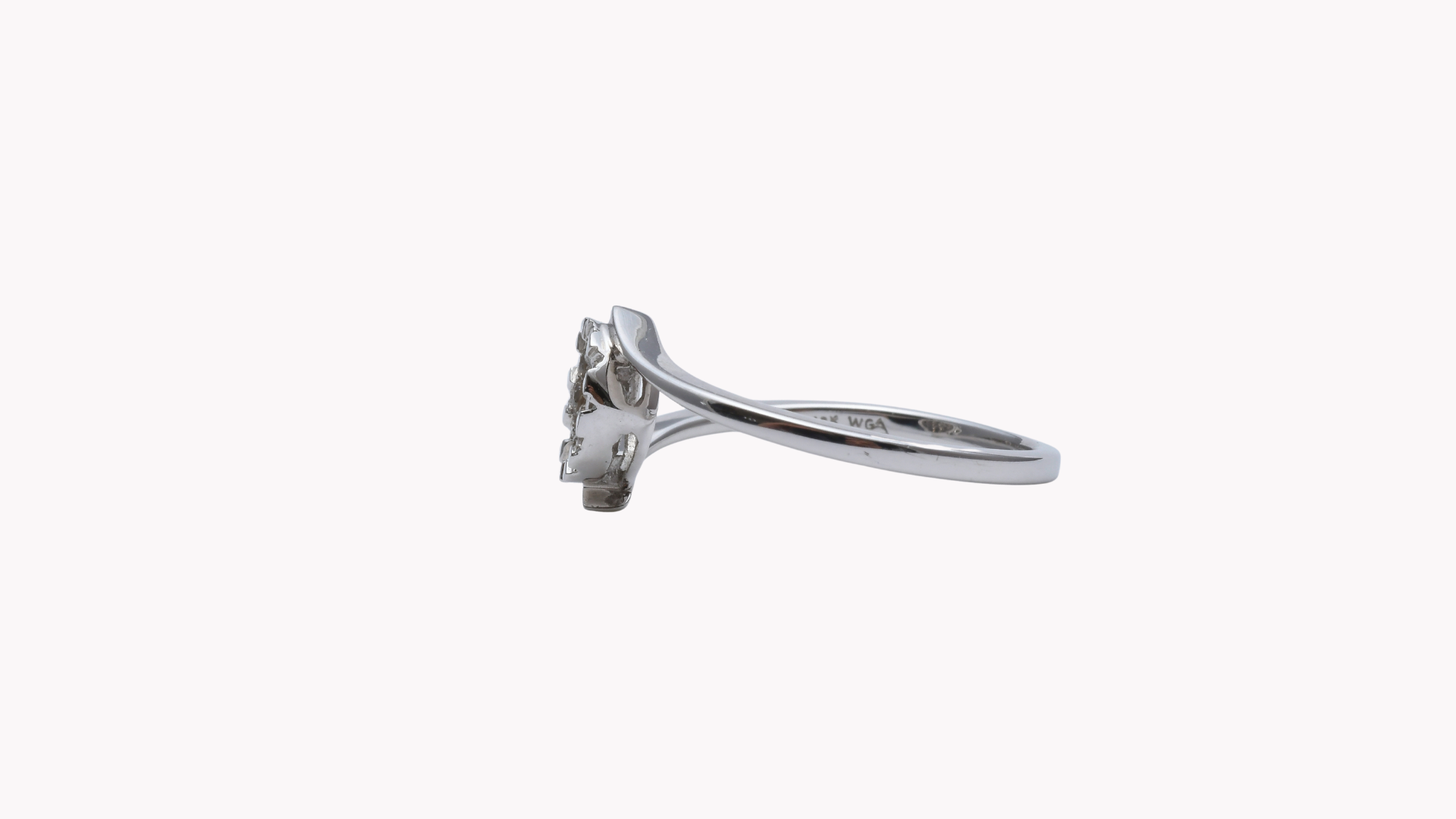 美しい石と作り手の想いを乗せた個性的なジュエリー。品質の良いジュエリーがお届けできるシリーズです。K18ホワイトゴールド、カーブモチーフ。宝石の総重量 0.270g。